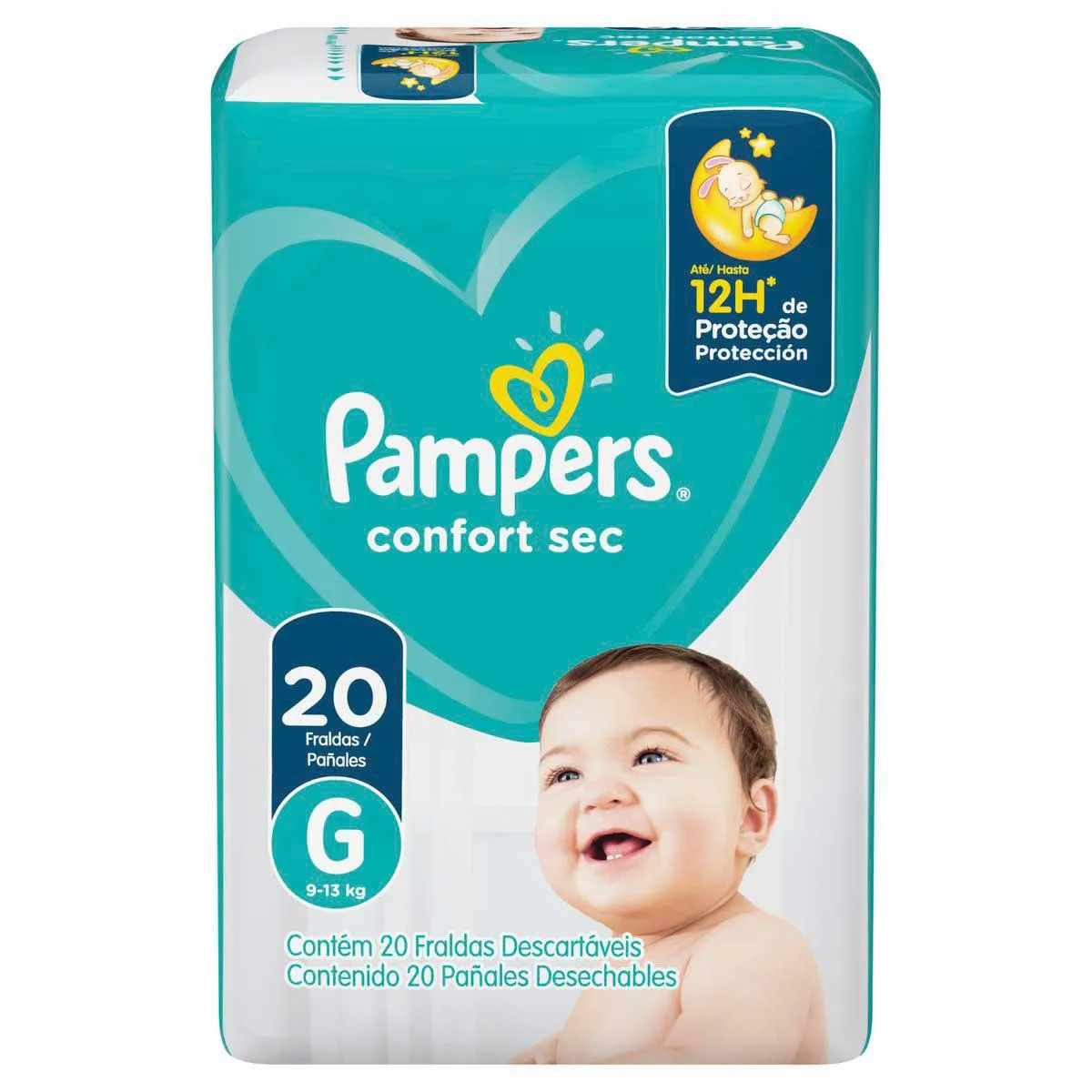 Nova pampers confort sec com canais de ar, que permitem que o ar circule livremente dentro da fralda, para o bumbum ficar menos abafado, e a pele arejada e sequinha durante a noite.