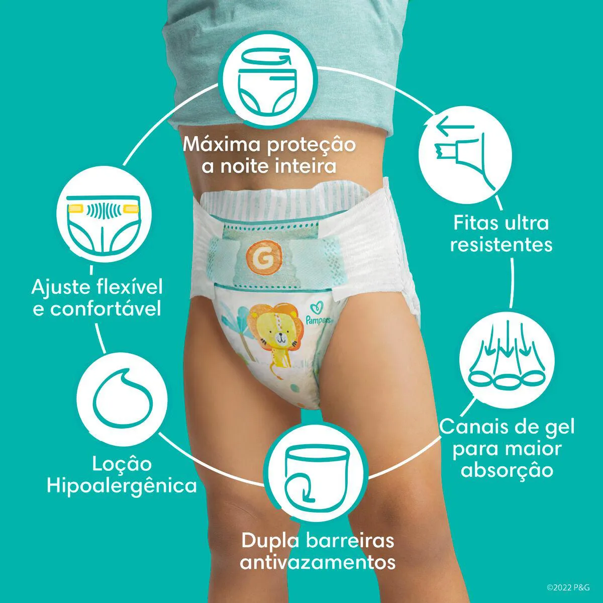 - Com 3 canais de gel absorventes extras, que distribuem o xixi e ajudam a evitar que a fralda fique caída.