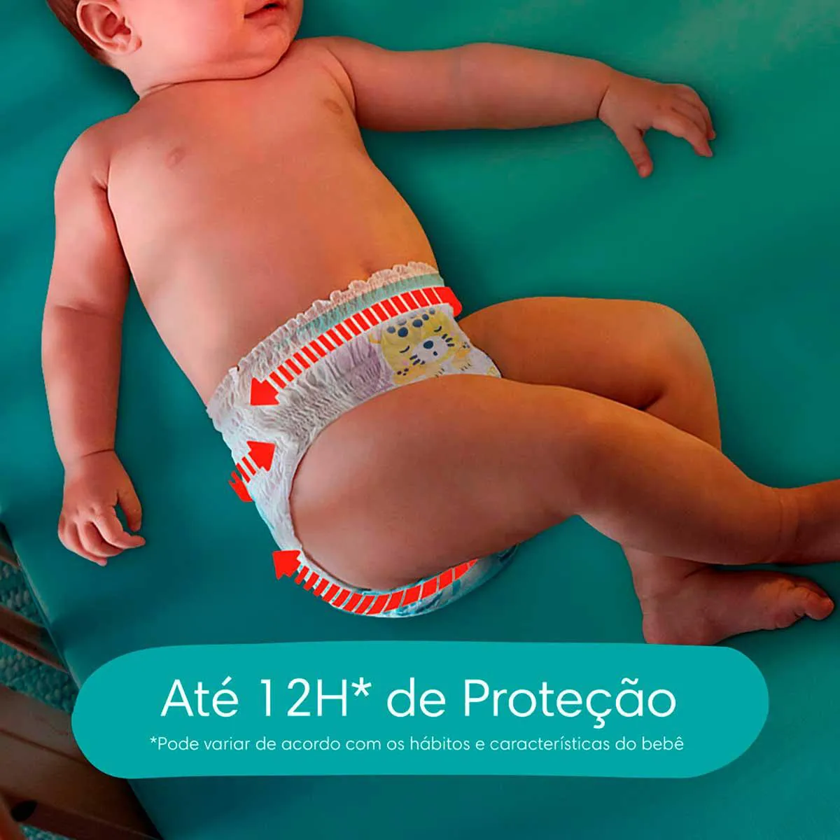Além disso, conta com canais de ar que permitem que o ar circule pela fralda, arejando a pele e evitando que o bumbum fique abafado. Ainda, vem com um gel mágico e uma camada ultra-Absorvente, que absorve e retém a umidade no interior da fralda, mantendo-a sequinha por até 12 horas e protegendo contra assaduras.
