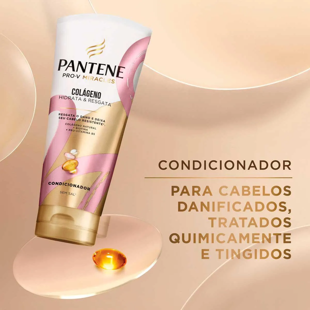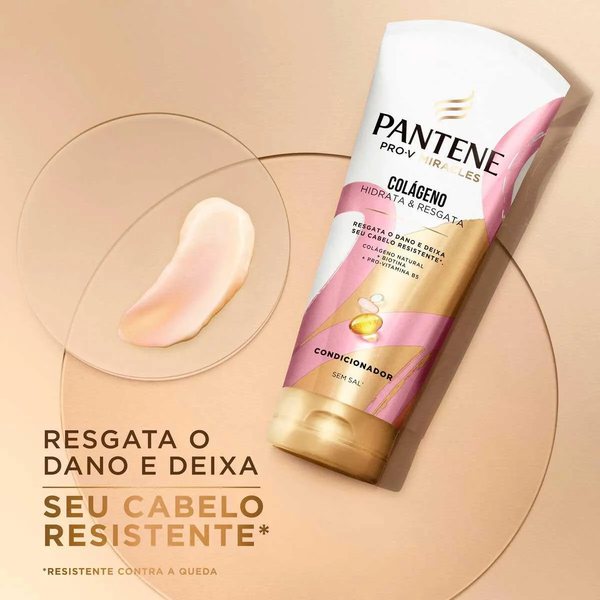 livre de sal, o Condicionador Pantene Colágeno Hidrata e Resgata possui fórmula com Pró-vitamina B5, Biotina e Colágeno natural, ingredientes poderosos que protegem o Cabelo dos danos associados às constantes transformações, além de resgatar profundamente os fios, reduzir as pontas duplas, fechar as cutículas e hidratar e revitalizar.