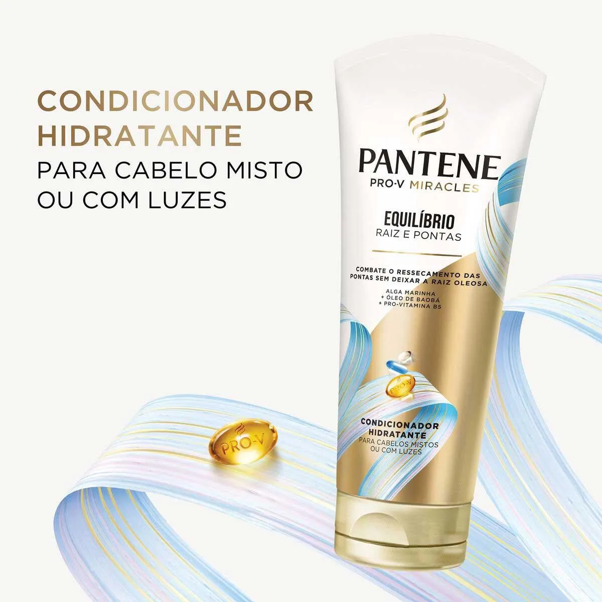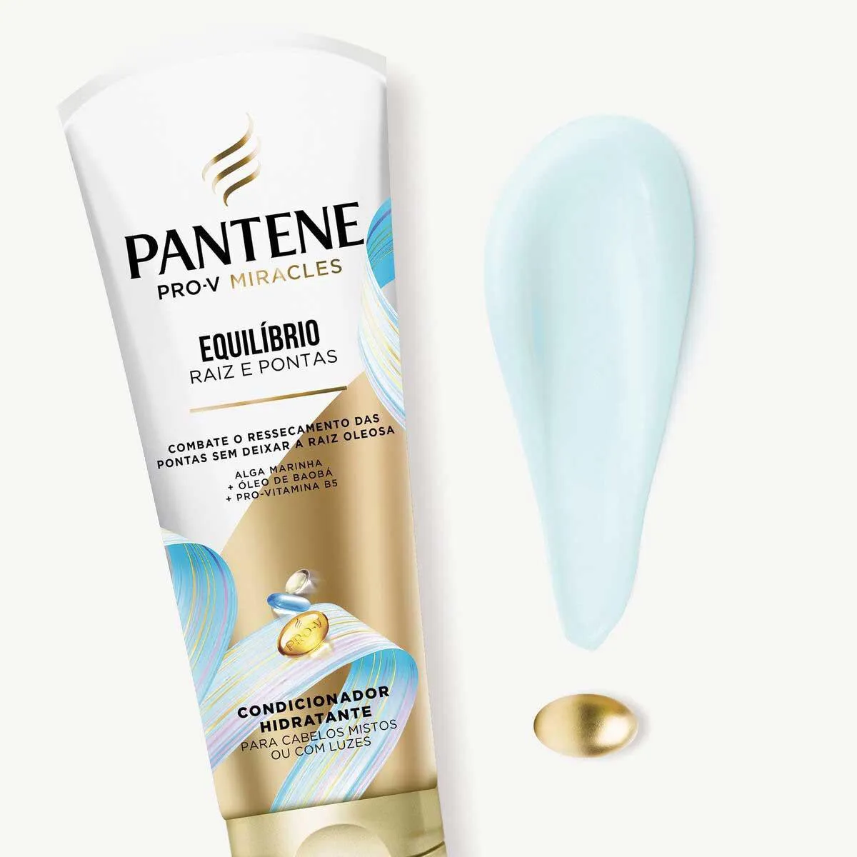 Pantene Pro-V Miracles Equilíbrio Raiz e Pontas é um condicionador com óleo de baobá e algas marinhas. Ele traz uma fórmula com ingredientes hidratantes e purificantes, além de ser totalmente seguro para cabelos com luzes, deixando-os mais soltinhos, frescos e brilhosos.