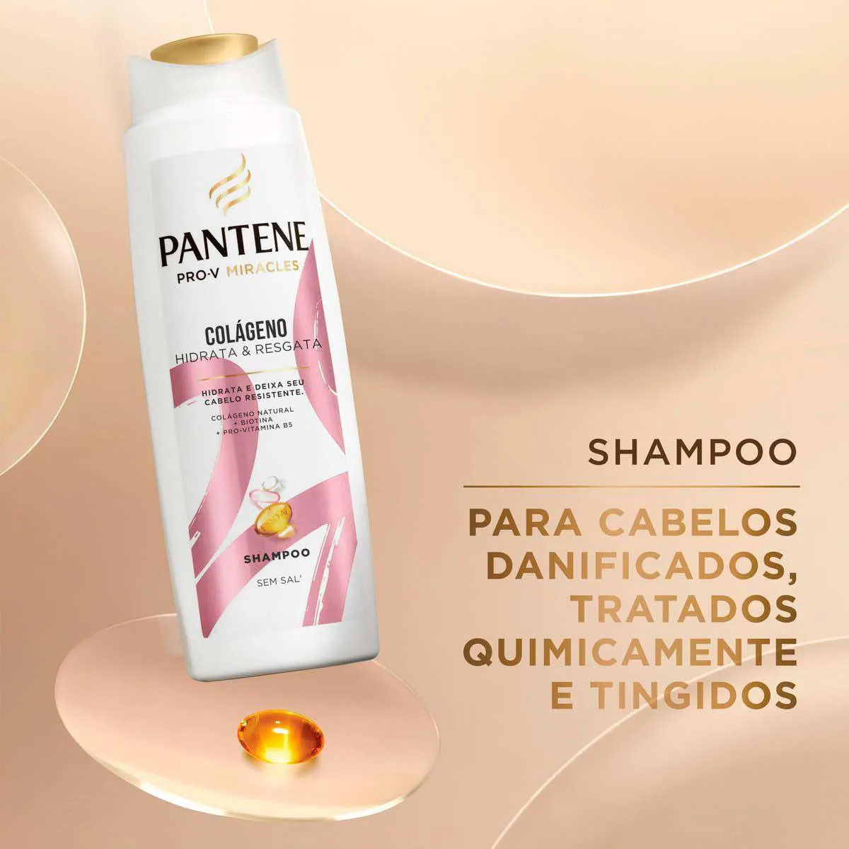 livre de sal, o Shampoo Pantene Colágeno Hidrata e Resgata possui fórmula com Pró-vitamina B5 e Biotina, ingredientes que, quando combinados, protegem o Cabelo dos danos associados às constantes transformações, resgatando profundamente até mesmo o cabelo mais danificado.