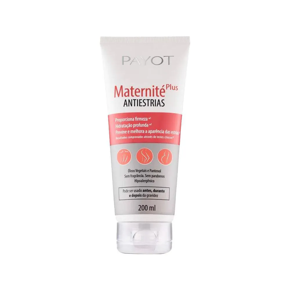 Creme Corporal Antiestrias Payot Maternité Plus foi desenvolvida especialmente para o tratamento e prevenção de estrias. Combina óleos vegetais e pantenol, que protegem e fortalecem as fibras elásticas e o colágeno da pele. Restaura a elasticidade e firmeza, hidrata e nutre profundamente, deixando a pele macia ao toque. Fórmula não gordurosa. Reduz o ressecamento e ajuda a prevenir o aparecimento de novas estrias. * RESULTADO: Antiestrias * SUGESTÕES DE USO: