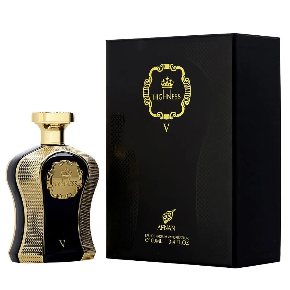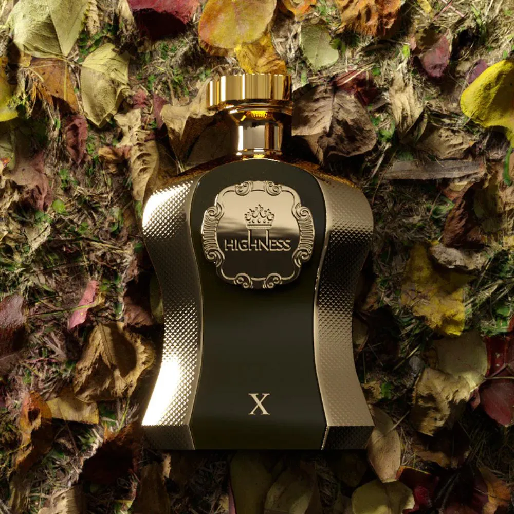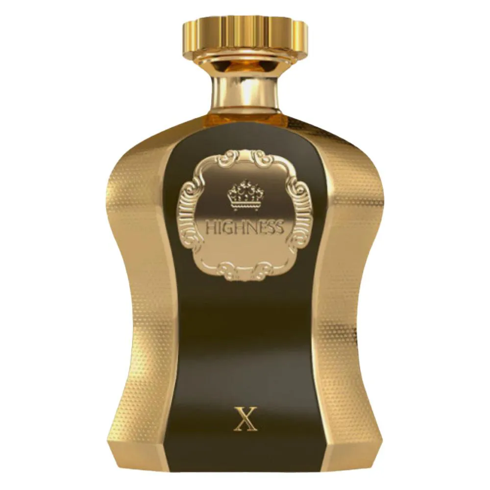 Afnan Highness X é uma fragrância forte e duradoura, projetada para durar por horas após a aplicação. É uma fragrância versátil que pode ser usada tanto durante o dia como à noite, sendo perfeita para ocasiões especiais ou para o uso diário. A embalagem do perfume é elegante e sofisticada, apresentando um frasco preto com detalhes dourados e uma coroa real em relevo.