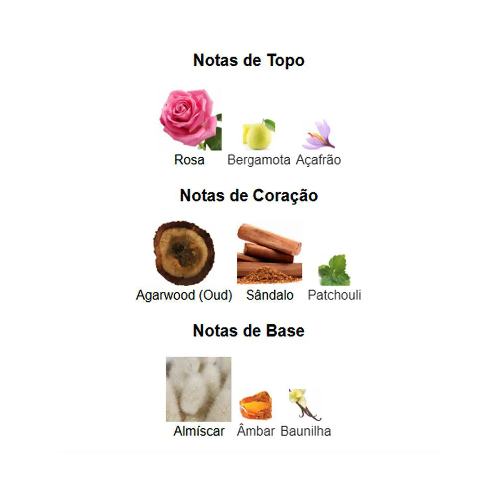 Notas de Topo: Rosa, Bergamota, Açafrão.