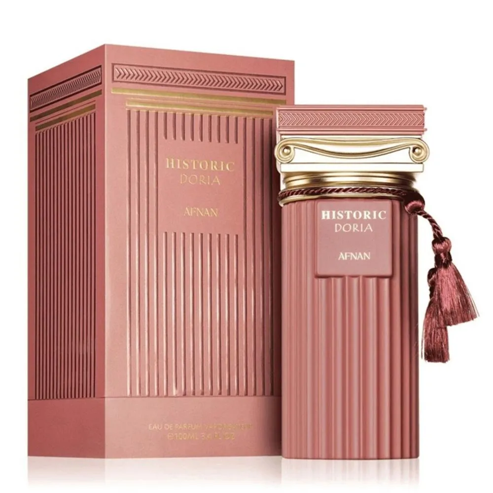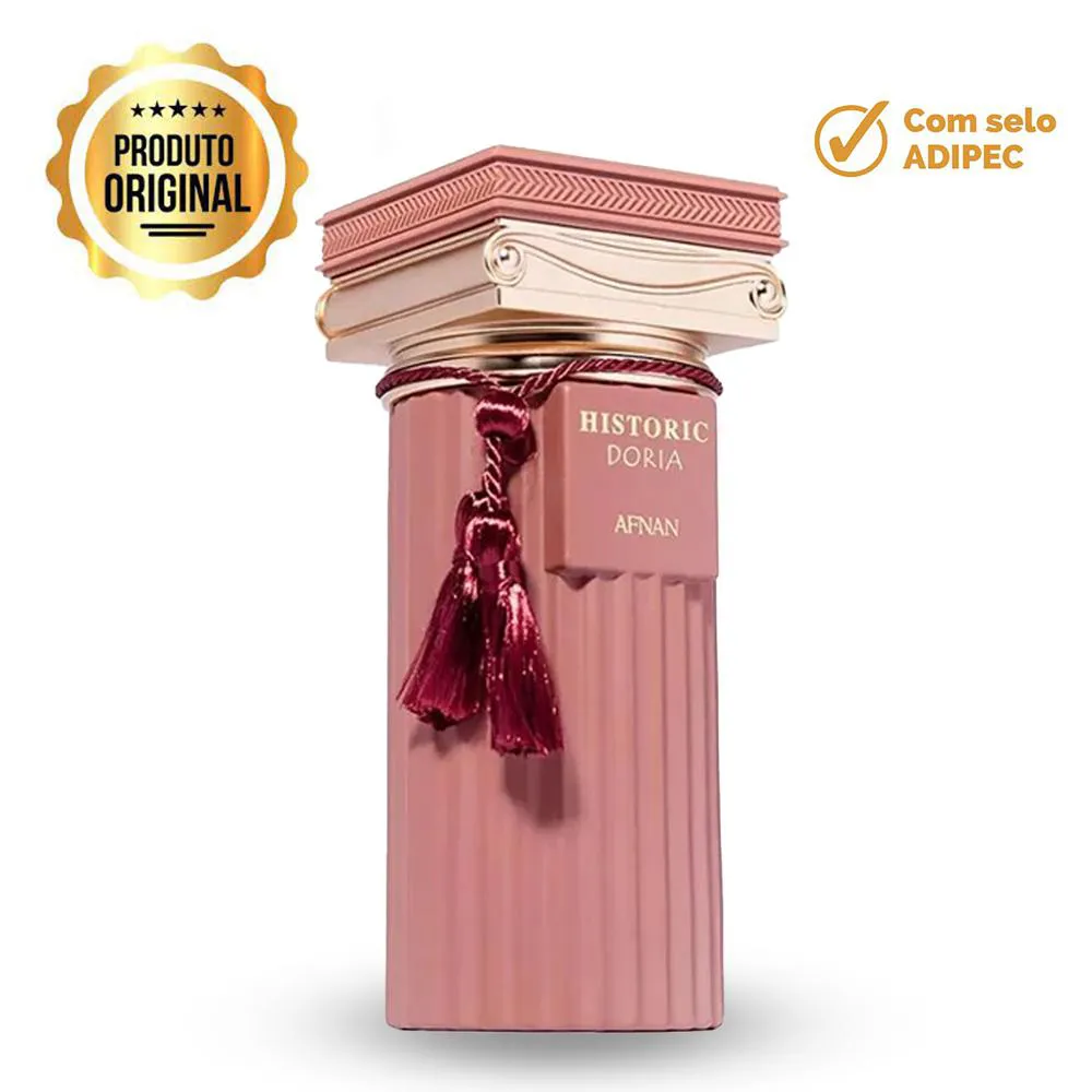 O perfume Historic Doria Eau de Parfum da Afnan, em sua versão Unissex de 100ml, é uma jornada olfativa que transcende o tempo e a história, encapsulando uma aura de elegância intemporal e sofisticação em um frasco imponente.