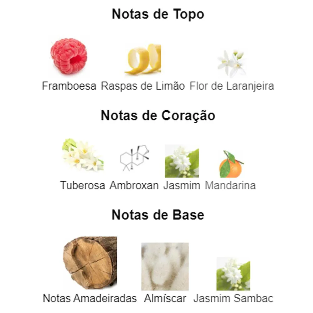Notas de Topo: Framboesa, Raspas de Limão e Flor de Laranjeira.