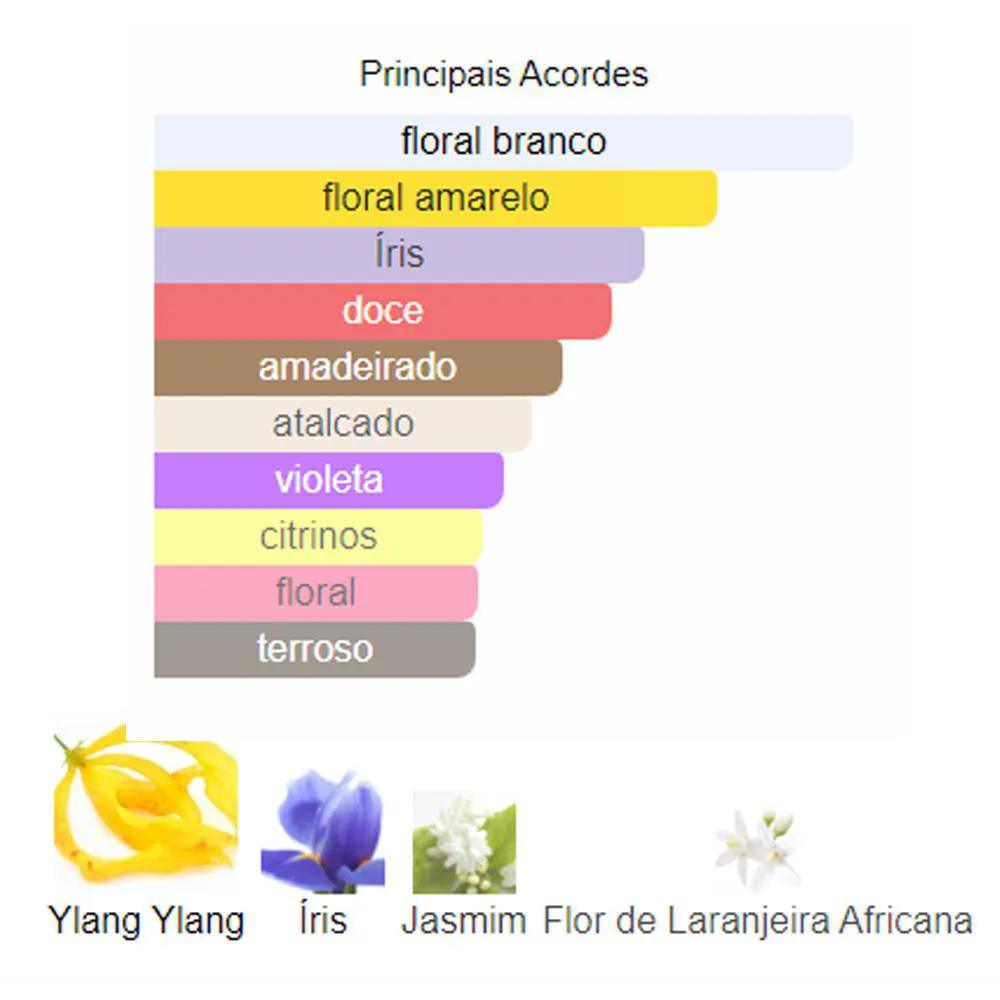 - Notas de Coração: Muguet, Rosa do Egito e Íris