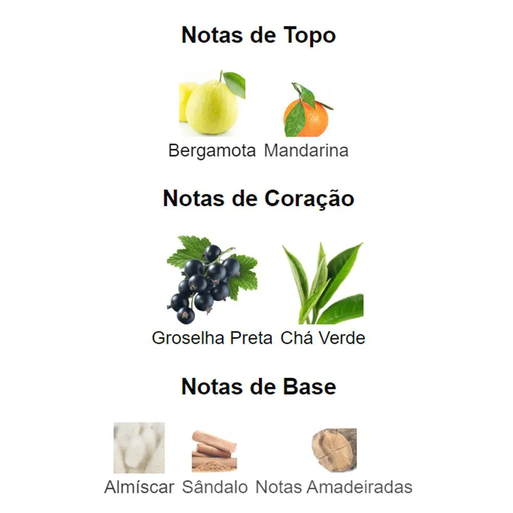 Notas de Coração: Groselha Preta e Chá Verde.