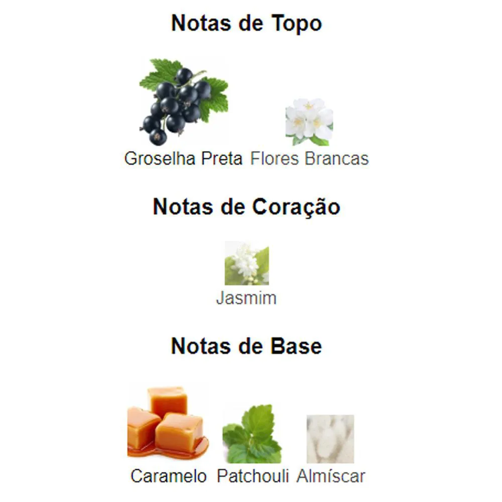 Pirâmide Olfativa:- Notas de Topo: Groselha, Bergamota e Abacaxi.