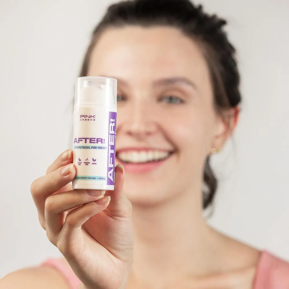 Creme Facial Hidratante Pós-Treino Pink Cheeks After para todos os Tipos de pele, ajudando a reparar, hidratar, acalmar, diminuir a vermelhidão e ardência da pele após a prática de atividade física ou transpiração excessiva.Sua fórmula é altamente enriquecida com potentes ativos que minimizam os efeitos causados pela intensa oxidação proveniente da prática de exercícios físicos, como manchas e rugas, sendo a opção perfeita de autocuidado após o treino.Contém Elevastin, que restaura a firmeza e a elasticidade, reforçando a sustentação da pele e diminuindo a flacidez causada pela força da gravidade. Possui ação hidratante e pró age. Repara, hidrata, acalma, diminui a vermelhidão e ardência da pele após a prática de atividade física ou transpiração excessiva. * RESULTADO:Calmante; Clareador de Manchas; Hidratante * SUGESTÕES DE USO:1.Com o Rosto limpo e seco;2.Aplique o produto espalhando até completa absorção;3.Não aplicar na área dos Olhos. * OBSERVAÇÕES:Imagem Meramente Ilustrativa * ITENS INCLUSOS: 1 Pink Cheeks After! Creme Facial Hidratante Pós-Treino 30g