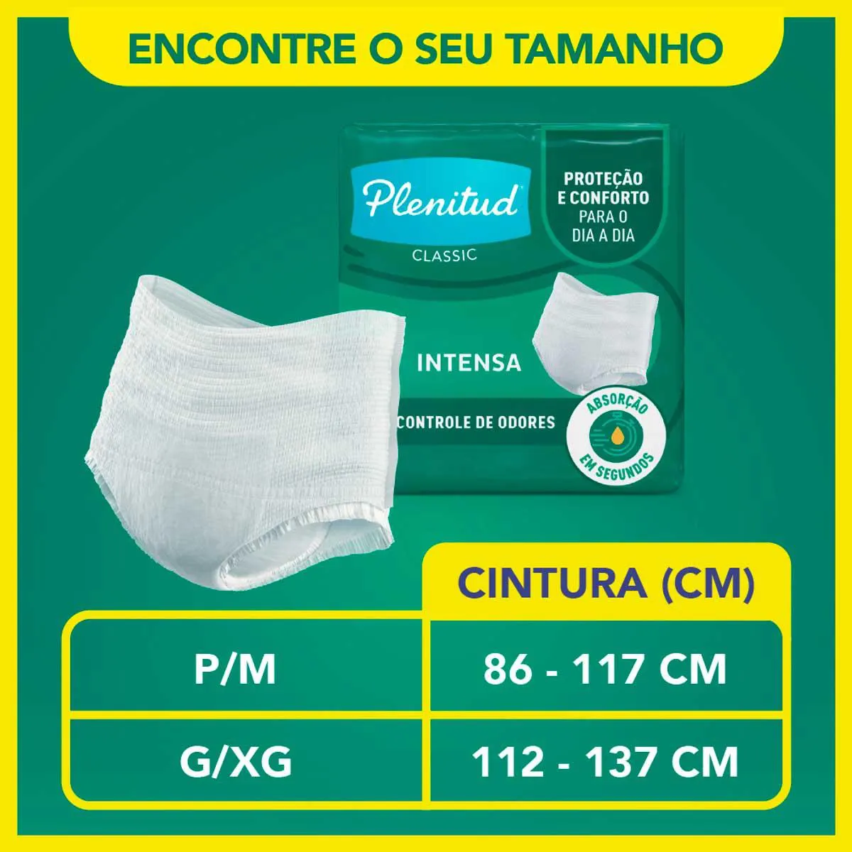 A roupa íntima Plenitud Classic é indicada para adultos com mobilidade reduzida e necessitam de uma roupa íntima com alto poder de absorção para incontinência intensa durante o dia. Foi desenvolvida com barreira protetora que previne vazamentos, além da tecnologia que neutraliza e controla odores.