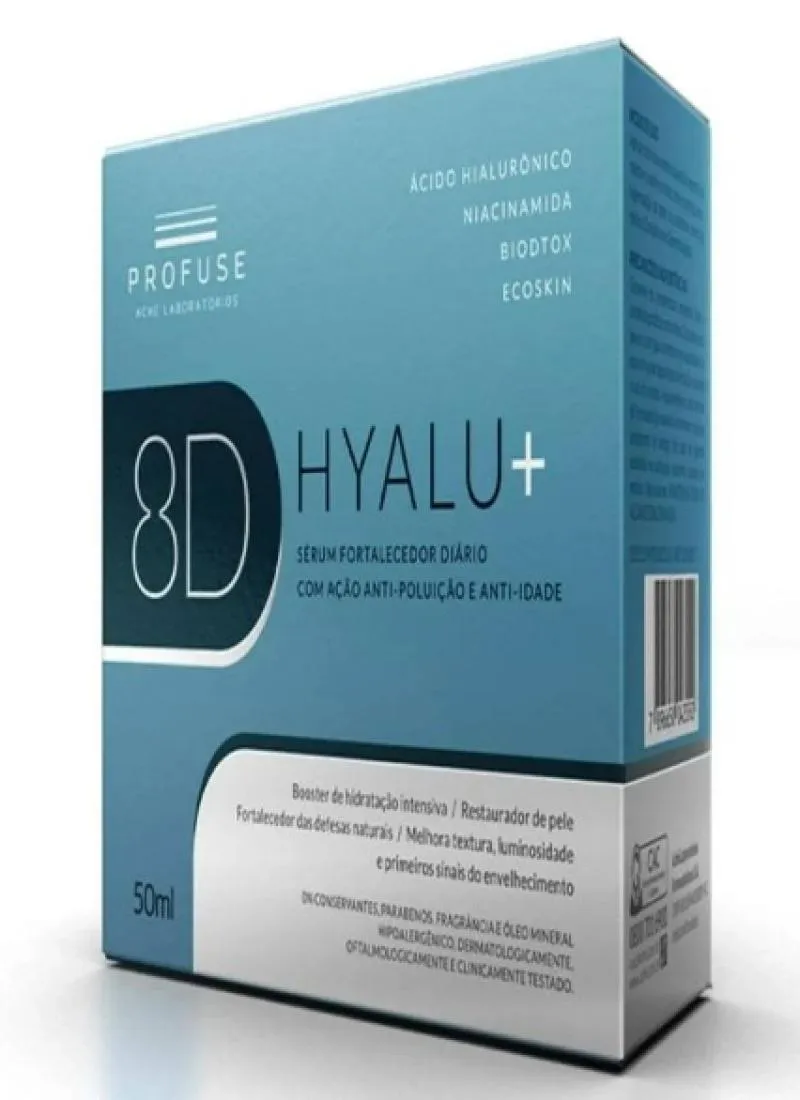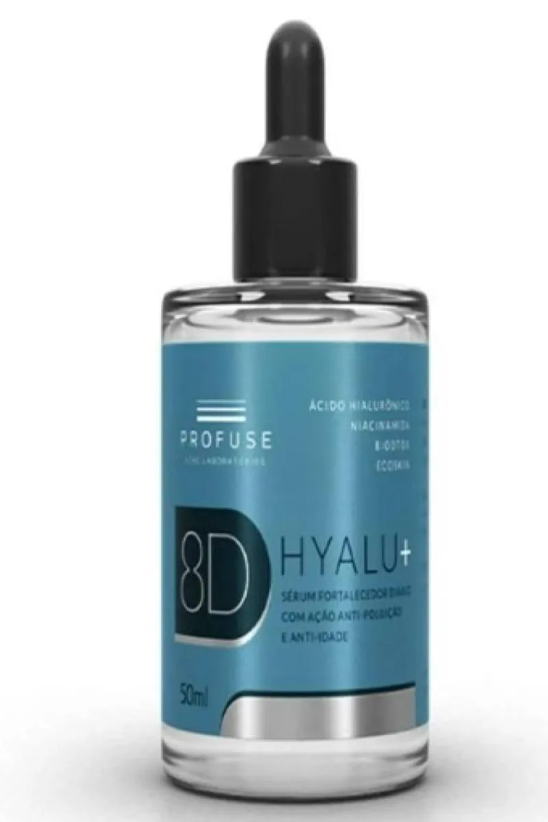 Profuse 8D Hyalu+ é um sérum fortalecedor diário que traz em sua formulação 8 diferentes tipos de ácido hialurônico, com alto poder hidratante, o ativo BioDtox com ação antipoluição, combatendo a oxidação gerada pelos poluentes ambientais, o complexo Ecoskin com ação pré e pós biótica e a Niacinamida, ativo consagrado nos cuidados com a pele.