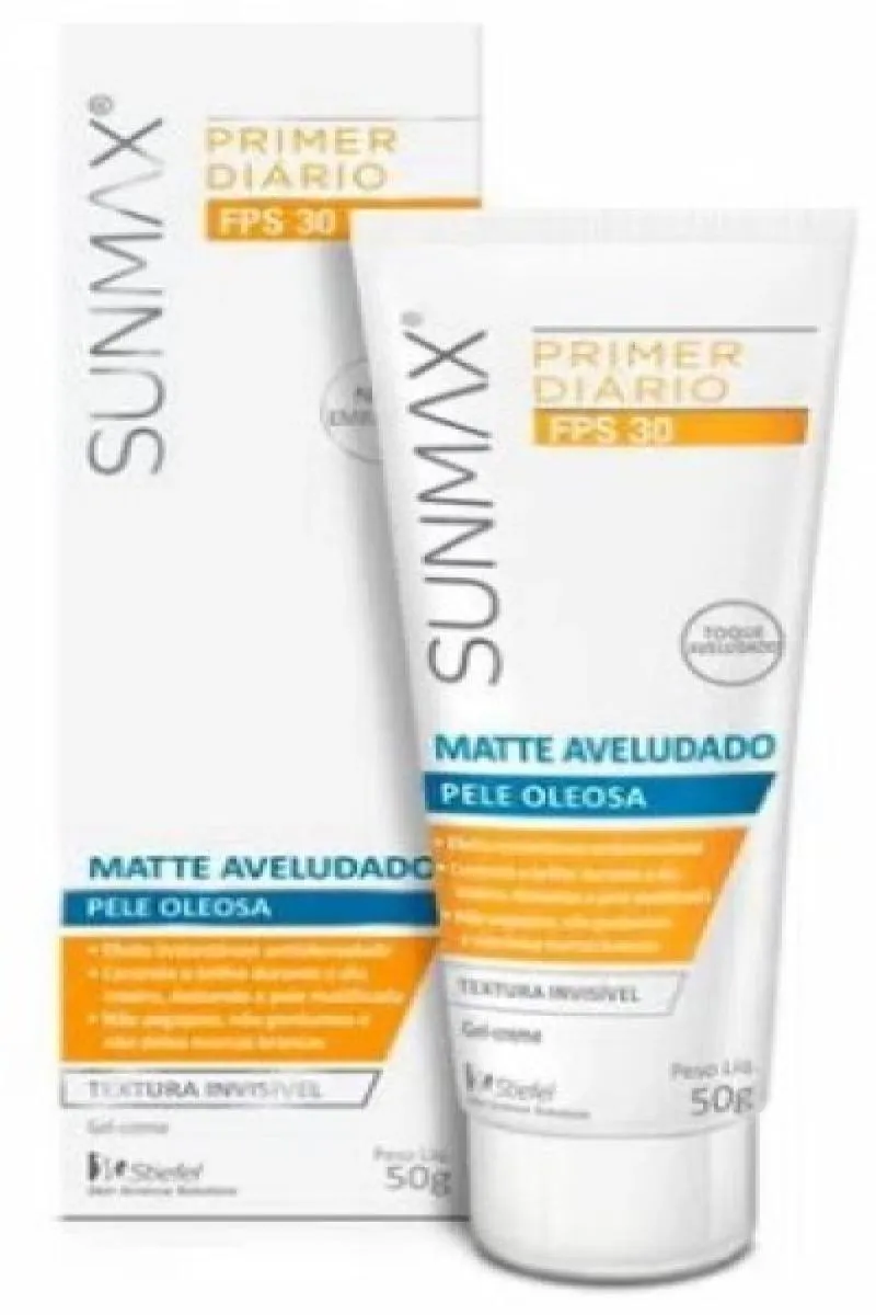 Protetor Solar Sunmax Matte Aveludado pele Oleosa – Possui textura invisivel e acabamento matte com toque aveludado – Efeito instantâneo antioleosidade, suaviza imperfeições e controla o brilho da pele durante o dia inteiro – Primer diário antioleosidade com FPS 30 e controla o brilho o dia todo – Não obstrui os poros e é muito resistente à água.