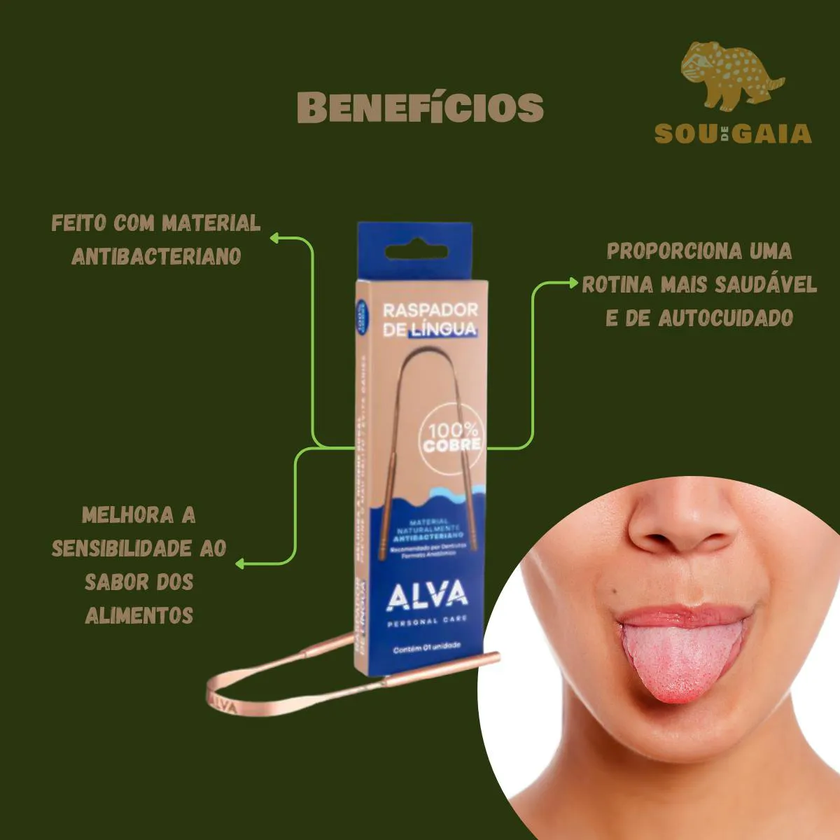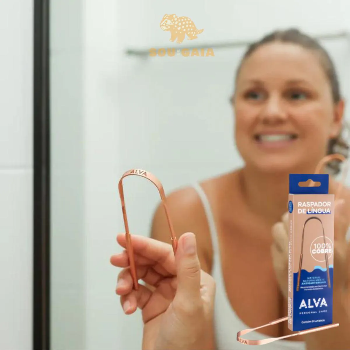 Experimente e conheça sua nova rotina predileta: Raspar a Língua com o Raspador de língua de COBRE da Alva!