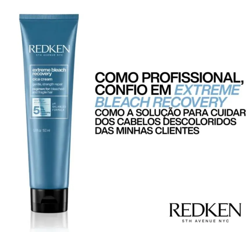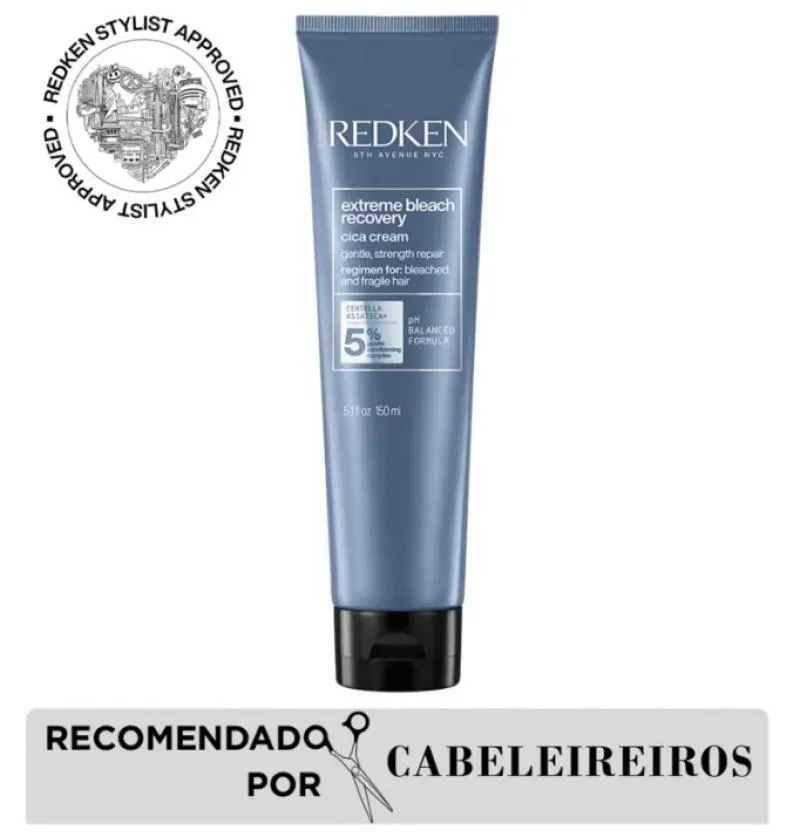 Leave-in fortificante para cabelos Danificados. Redken Extreme Bleach Recovery Cica Cream nutre, condiciona profundamente e recupera os danos.