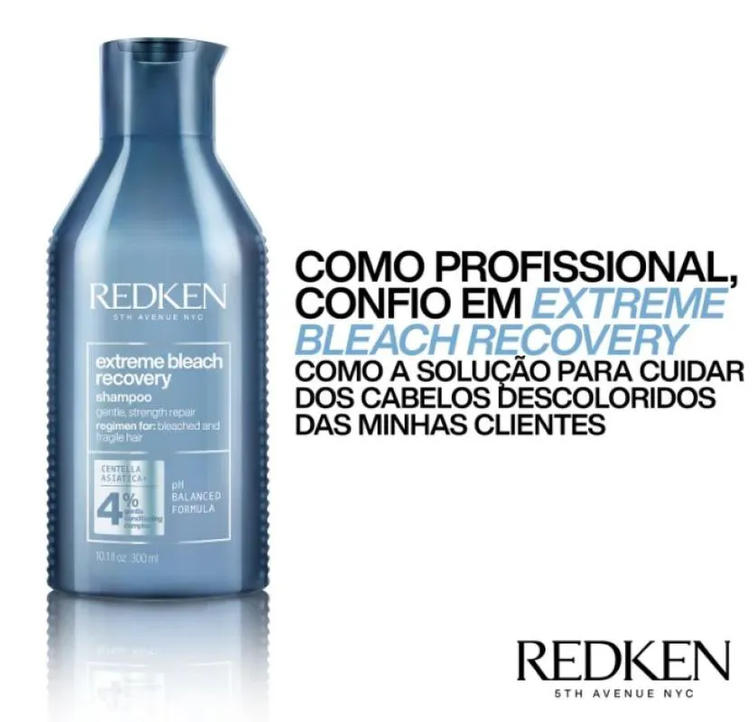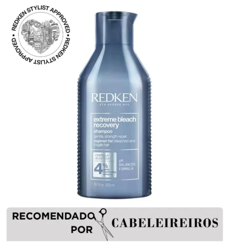 Shampoo fortificante para cabelos sensibilizados ou Danificados. Redken Extreme Bleach Recovery combate a rigidez e deixa os fios mais resistentes.