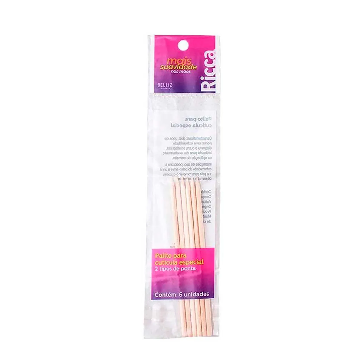 confortáveis, afiados e lisos, os palitos de cutícula de madeira da Ricca são essenciais para o cuidado com as unhas.