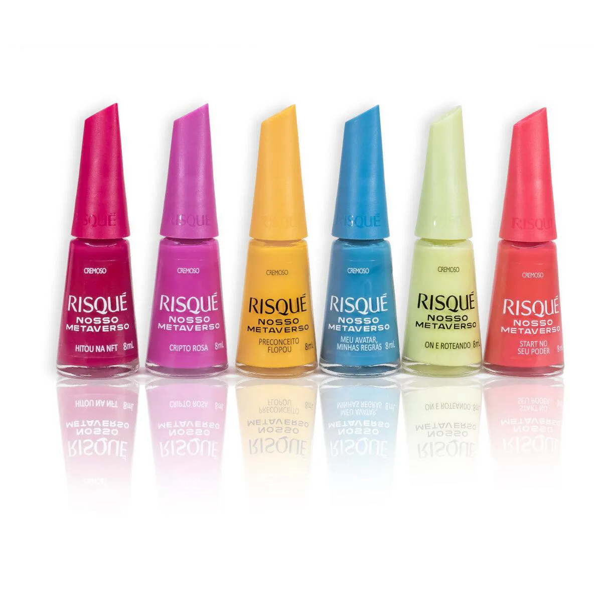Inspirada no mundo virtual, o Metaverso, a linha Nosso Metaverso Risqué conta com esmaltes que possuem cores tendências com alta durabilidade e cobertura, secagem rápida e fórmula hipoalergênica (livres de substâncias que podem causar alergias).