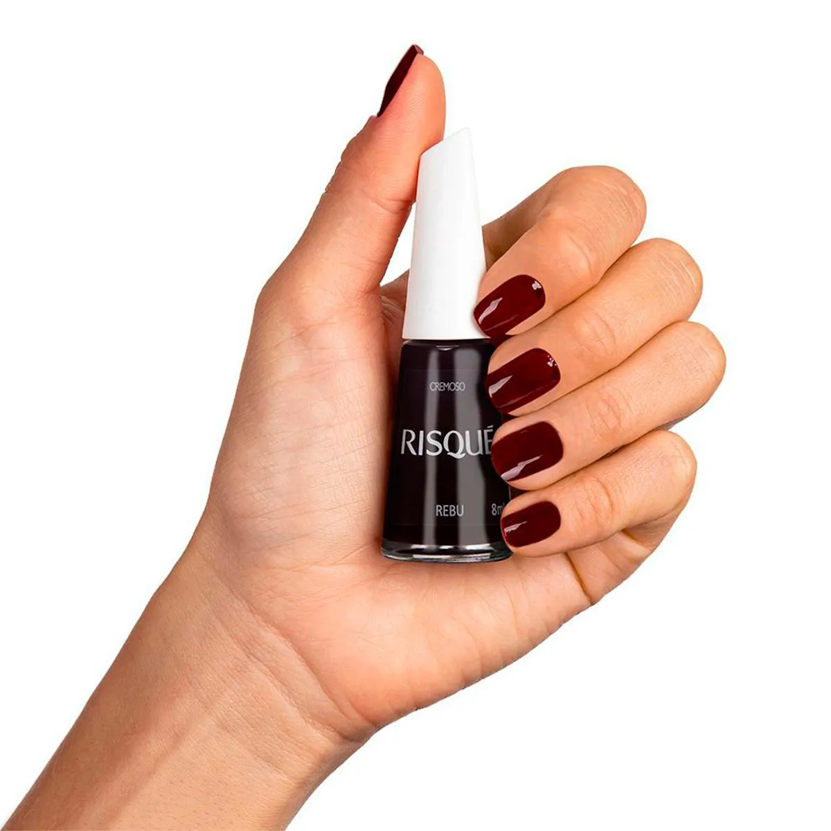 A versão Rebu tem um tom vermelho escuro que deixa as suas unhas mais bonitas e elegantes, perfeito para o dia a dia.