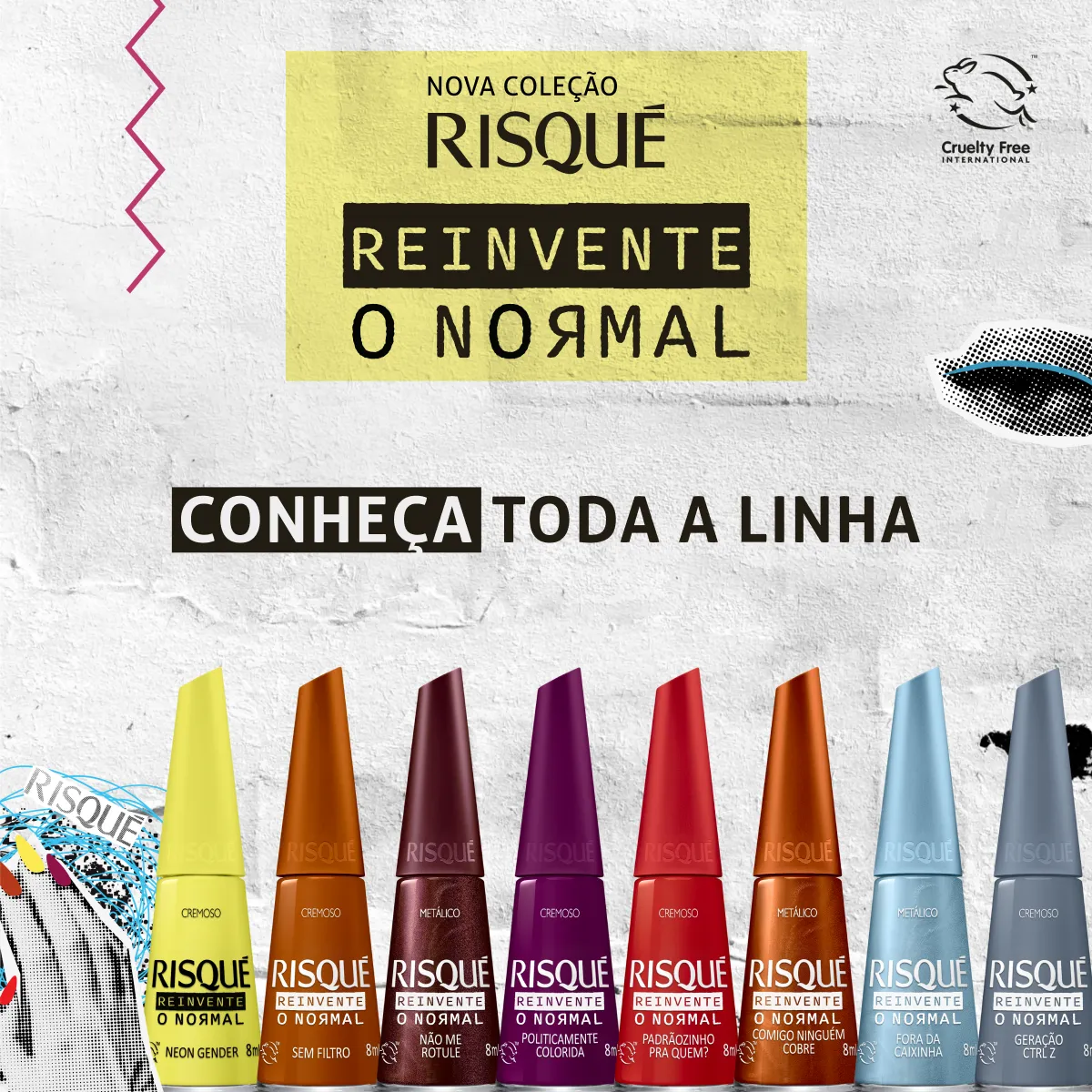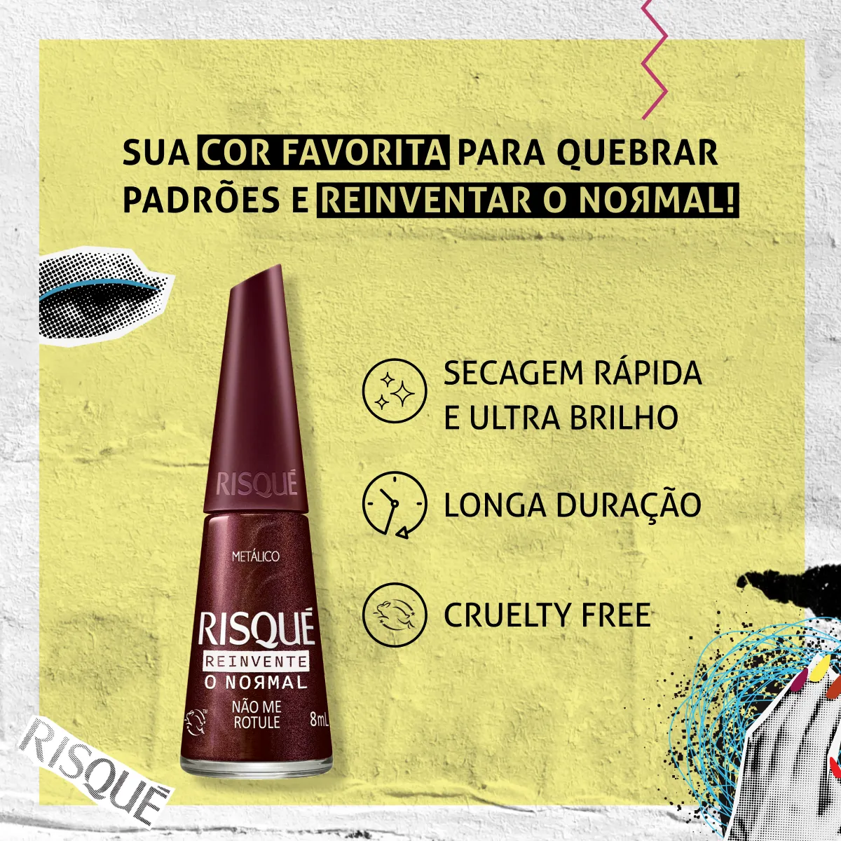 O Não Me Rotule é um esmalte Risqué da linha Reinventando o Normal, uma coleção exclusiva que incentiva a quebrar padrões, reinventando a forma de enxergar o que é normal na sociedade. Afinal, normal é se sentir bem consigo mesmo, sem rótulos, sem filtro e de forma divertidamente colorida.