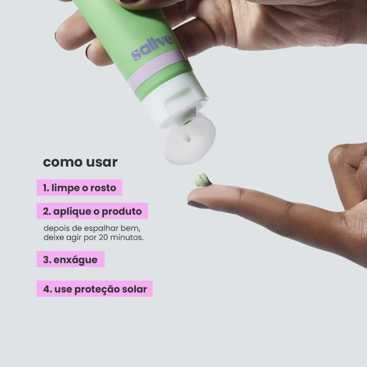O que ele tem: argila verde: remove a oleosidade em excesso, desobstrui os poros e regula a produção de sebo. também ajuda no tratamento de espinhas pois tem função antisséptica, bactericida, analgésica e cicatrizante. ácido salicílico BHA (beta hidroxiácido) que, além de oferecer ação anti inflamatória, penetra e desentope os poros, promovendo uma esfoliação química que auxilia no controle e prevenção de cravos e espinhas. centella asiática rica em vitaminas C, A, B1 e B2, niacina, caroteno e antioxidantes, é aliada no tratamento de espinhas e no processo desinflamatório, acalma a vermelhidão, repara a barreira da pele e ajuda a prevenir cicatrizes e hiperpigmentação. alfa bisabolol ativo reconhecido por sua ação anti-inflamatória e Calmante, que também possui ação antioxidante. alantoína ativo poderoso com efeito hidratante e ação calmante. ele é responsável por ajudar a reduzir a inflamação e vermelhidão da pele.