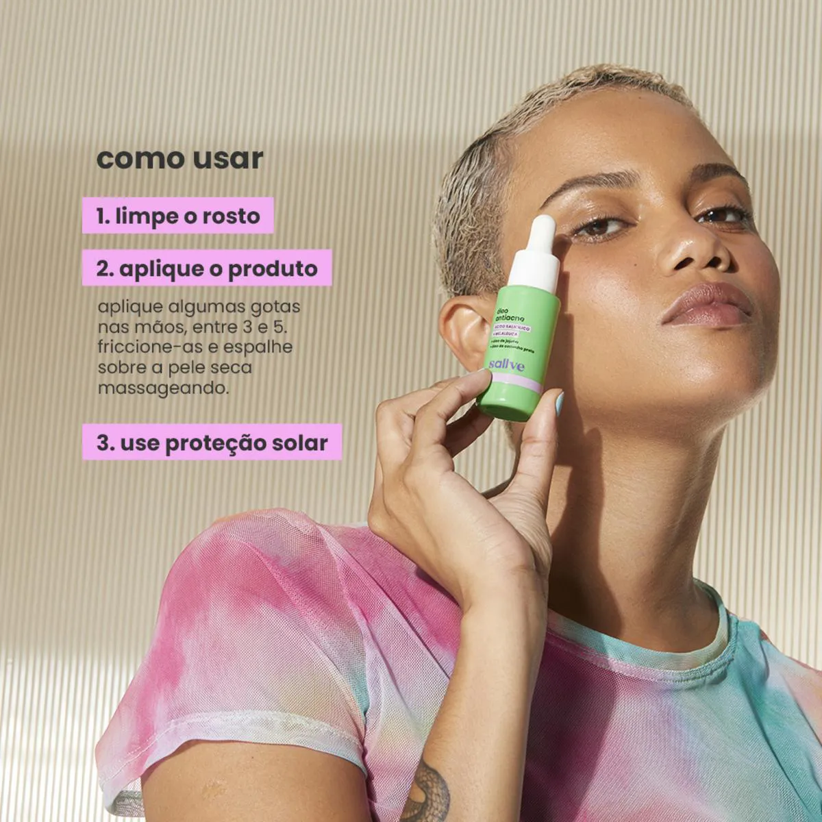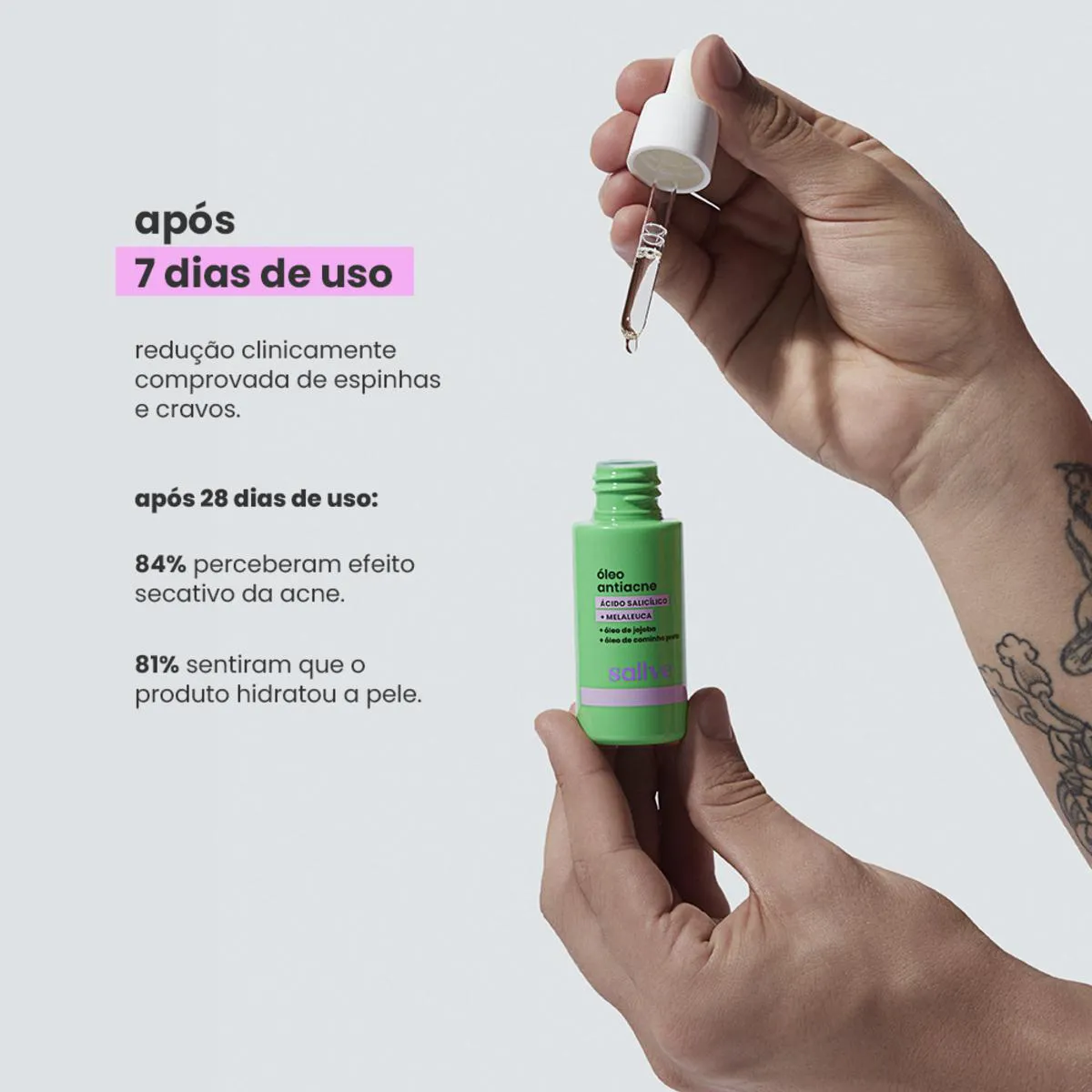 Um sérum-óleo facial de combate e prevenção da acne de leve e de rápida absorção, que hidrata, repara a barreira de proteção da pele e reequilibra a produção de óleos da pele.