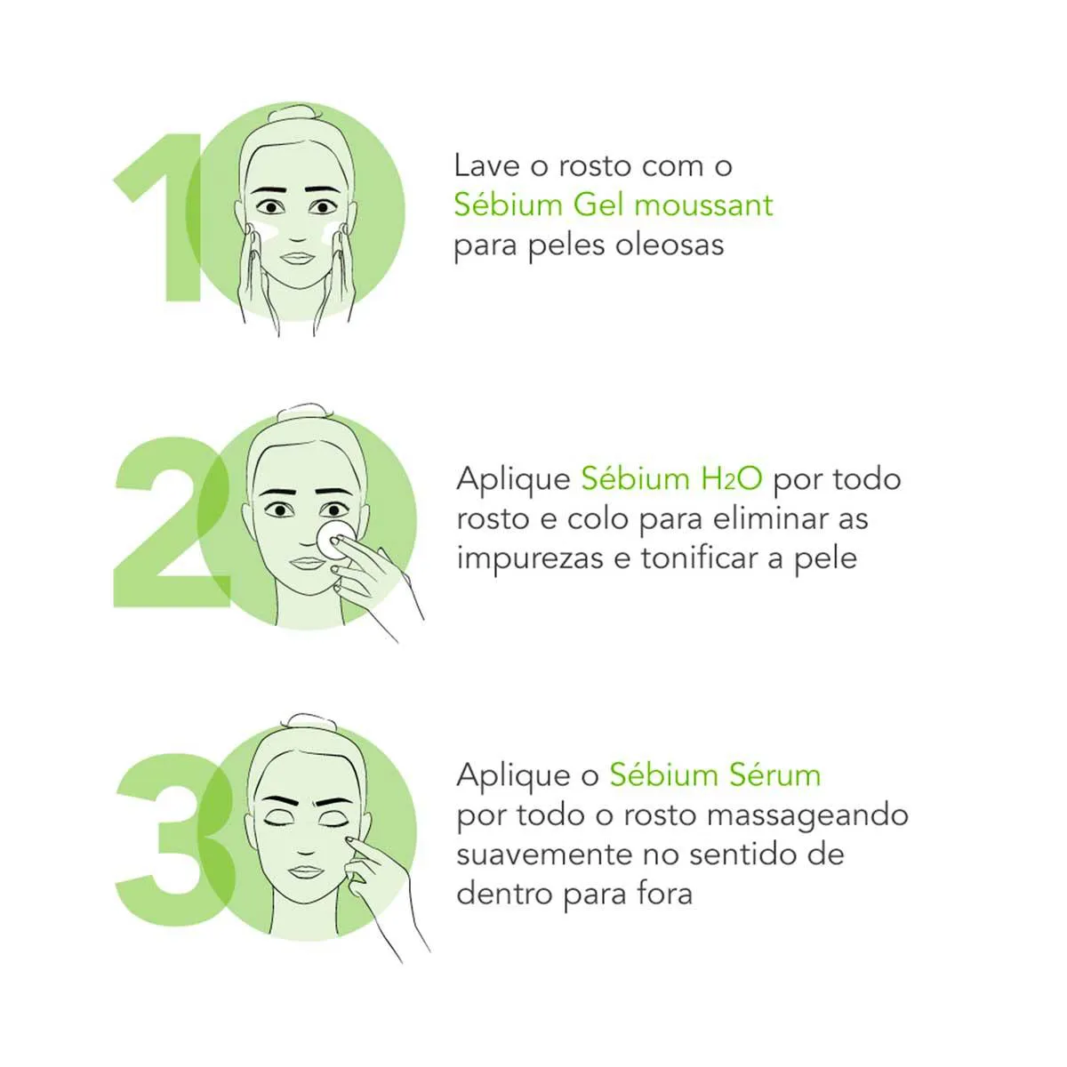Com a pele limpa, aplique o Sébium Sérum de manhã e à noite no Rosto e pescoço, massageando suavemente a pele.