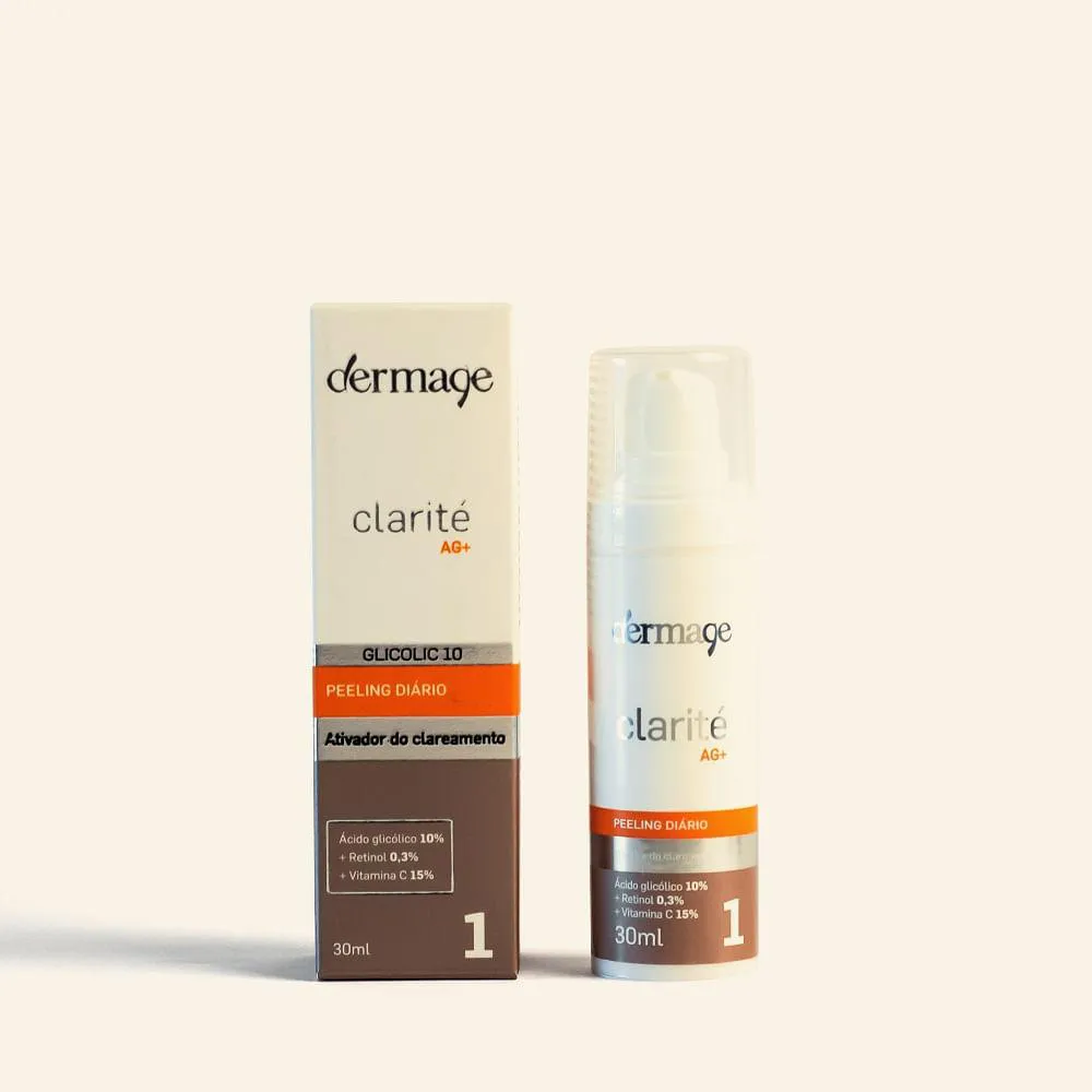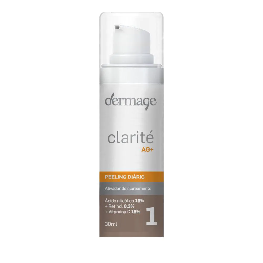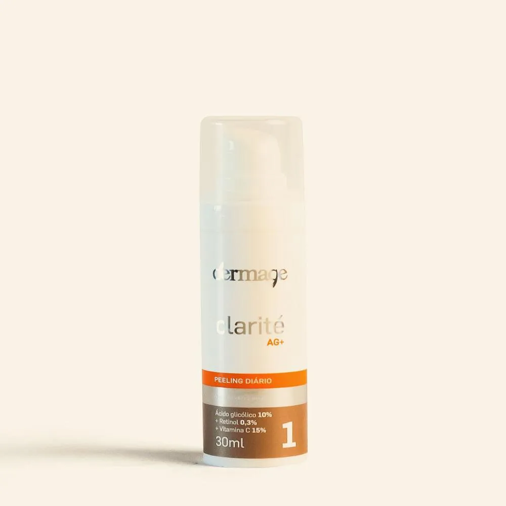 Sérum com ação de peeling diário, Clarité AG+ promove a luminonisadade e a renovação celular enquanto colabora para o tratamento clareador de manchas. Com vitamina c, retinol e ácido glicólico, tem ainda ação anti-idade.