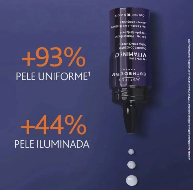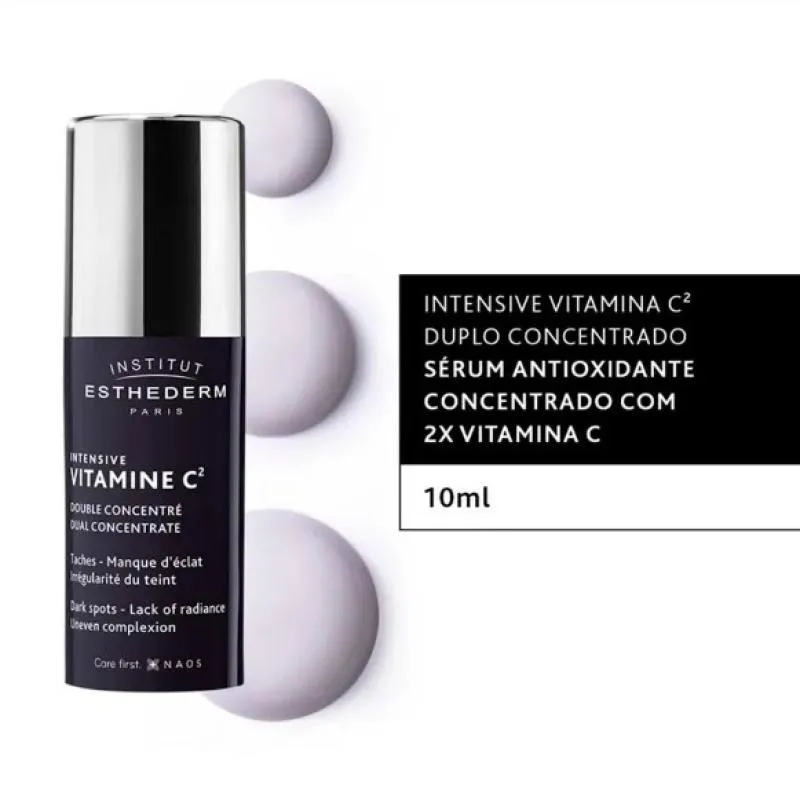 O Sérum Facial Esthederm Intensive Vitamine C² é o 1º sérum antioxidante com duas formas de vitamina c: 10% de Vitamina C pura, que tem uma potente ação antioxidante e 2% Pró-Vitamina C de liberação prolongada, que tem uma ação Redutor de Linhas duradoura. O produto conta com uma textura leve e de absorção imediata, além de dupla dose e dupla eficácia contra os sinais da idade.