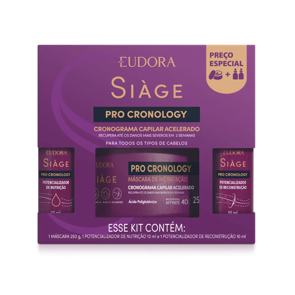 Kit Siàge Pro Cronology Máscara de Hidratação 250g + Potencializador de Nutrição 10ml + Potencializador de Reconstrução 10ml
