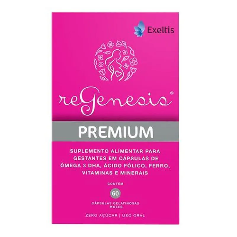 Também contém selênio, um antioxidante que auxilia na proteção dos danos causados pelos radicais livres. É indicado para as gestantes como opção de suplementação alimentar para contribuir com a boa formação do bebê. Regenesis Premium possui alta concentração de Ômega 3 DHA (600mg), Metifolato, 2000UI de Vitamina D, Ferro e mais outras 13 vitaminas e minerais, em uma fórmula sem adição de açúcar.
