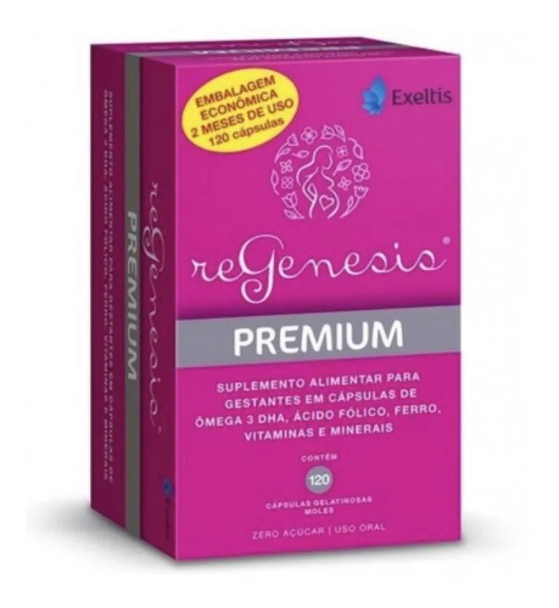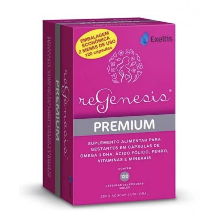 Também contém selênio, um antioxidante que auxilia na proteção dos danos causados pelos radicais livres. É indicado para as gestantes como opção de suplementação alimentar para contribuir com a boa formação do bebê. Regenesis Premium possui alta concentração de Ômega 3 DHA (600mg), Metifolato, 2000UI de Vitamina D, Ferro e mais outras 13 vitaminas e minerais, em uma fórmula sem adição de açúcar.