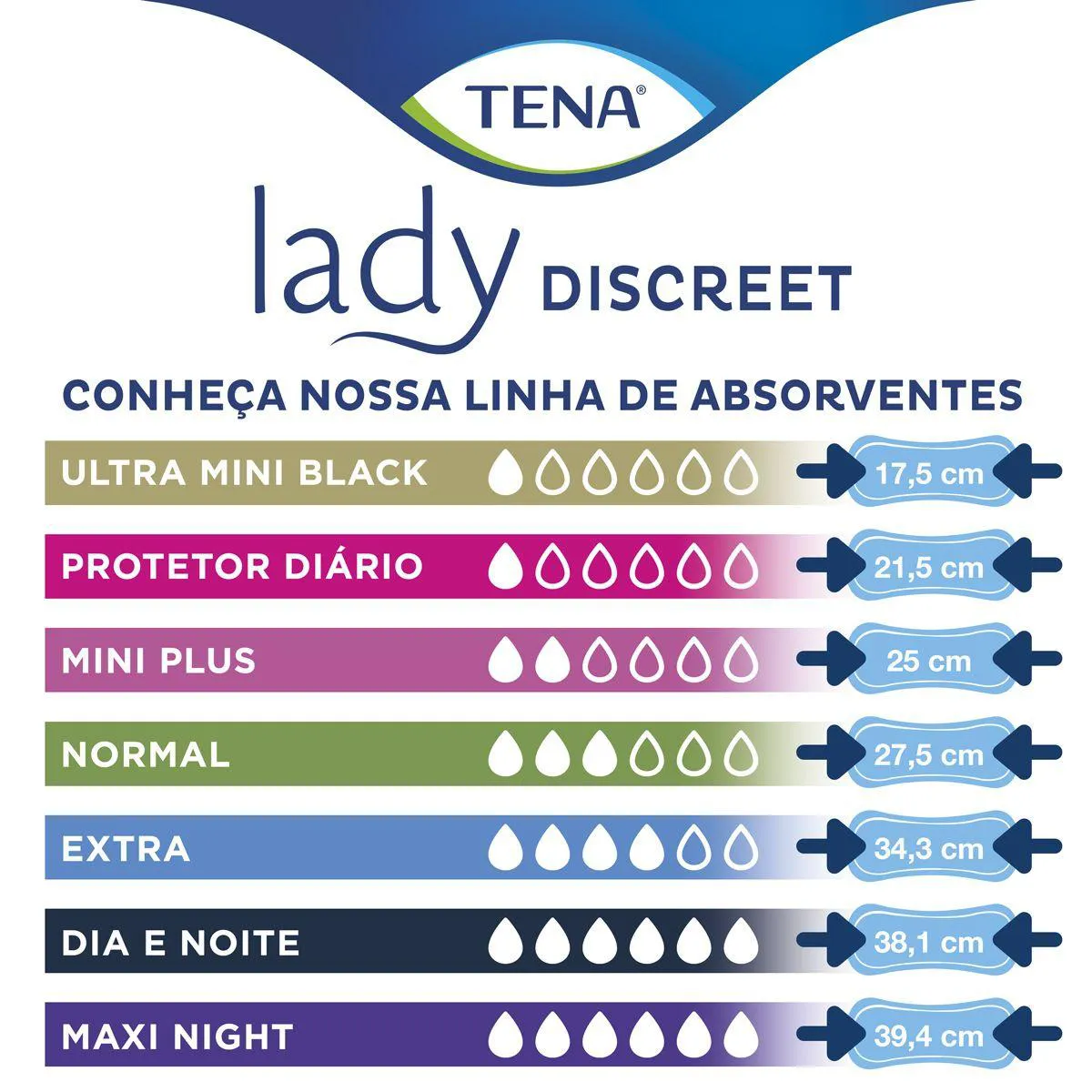 Mesmo com formato fino, suave e discreto, o Tena Discreet absorve sete vezes mais que o absorvente menstrual comum e conta com tecnologias e benefícios diferenciados, como: