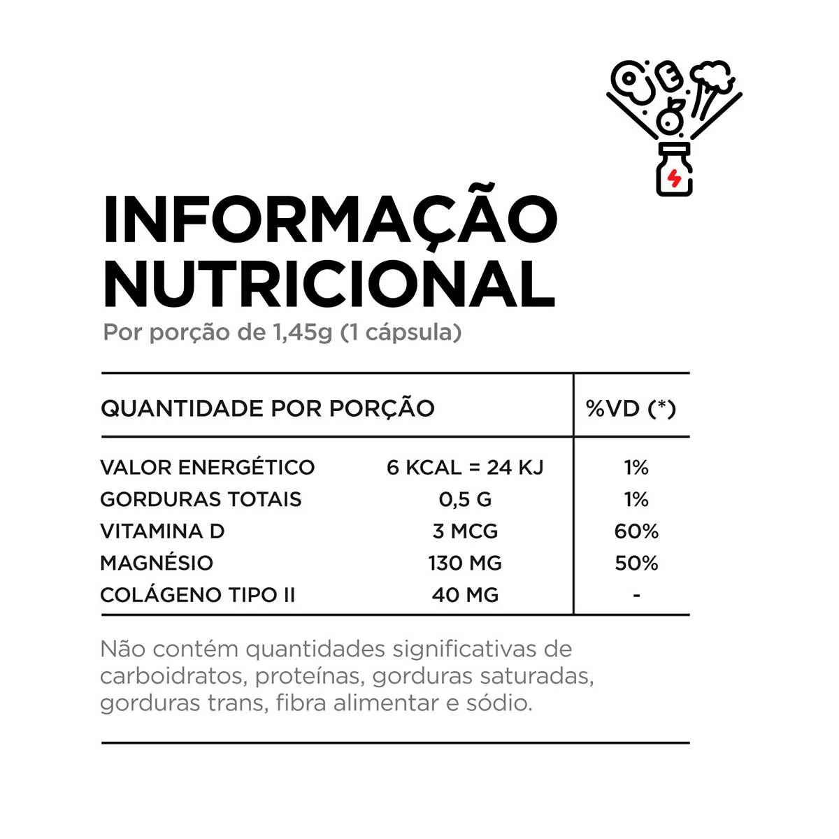 Proteja suas articulações e tenha muito mais performance nos seus treinos e qualidade de vida! Com ARTICULA FLEX TOPWAY você tem a suplementação de colágeno não desnaturado, que é o componente maioritário presente na cartilagens ideal para poder auxiliar na saúde de suas articulações melhorando o processo inflamatório, auxilia no tratamento de lesões nas cartilagens, artrite reumatoide e doenças articulares autoimunes. Uma das formas de ajudar o Corpo a repor o colágeno e principalmente, aliviar os sintomas, é o uso de suplementos a base de colágeno tipo 2, que reduz a inflamação em casos de osteoartrite e reumatismo e melhorando a saúde das articulações. A Vitamina D e o Magnésio que incluímos em nossa formulação especial de ARTICULA FLEX TOPWAY influencia em diversos sistemas fisiológicos e mostrou eficiente no tratamento de doenças articulares pelos seus benefícios anti-inflamatório, imuno-protetor e aliviando as dores.