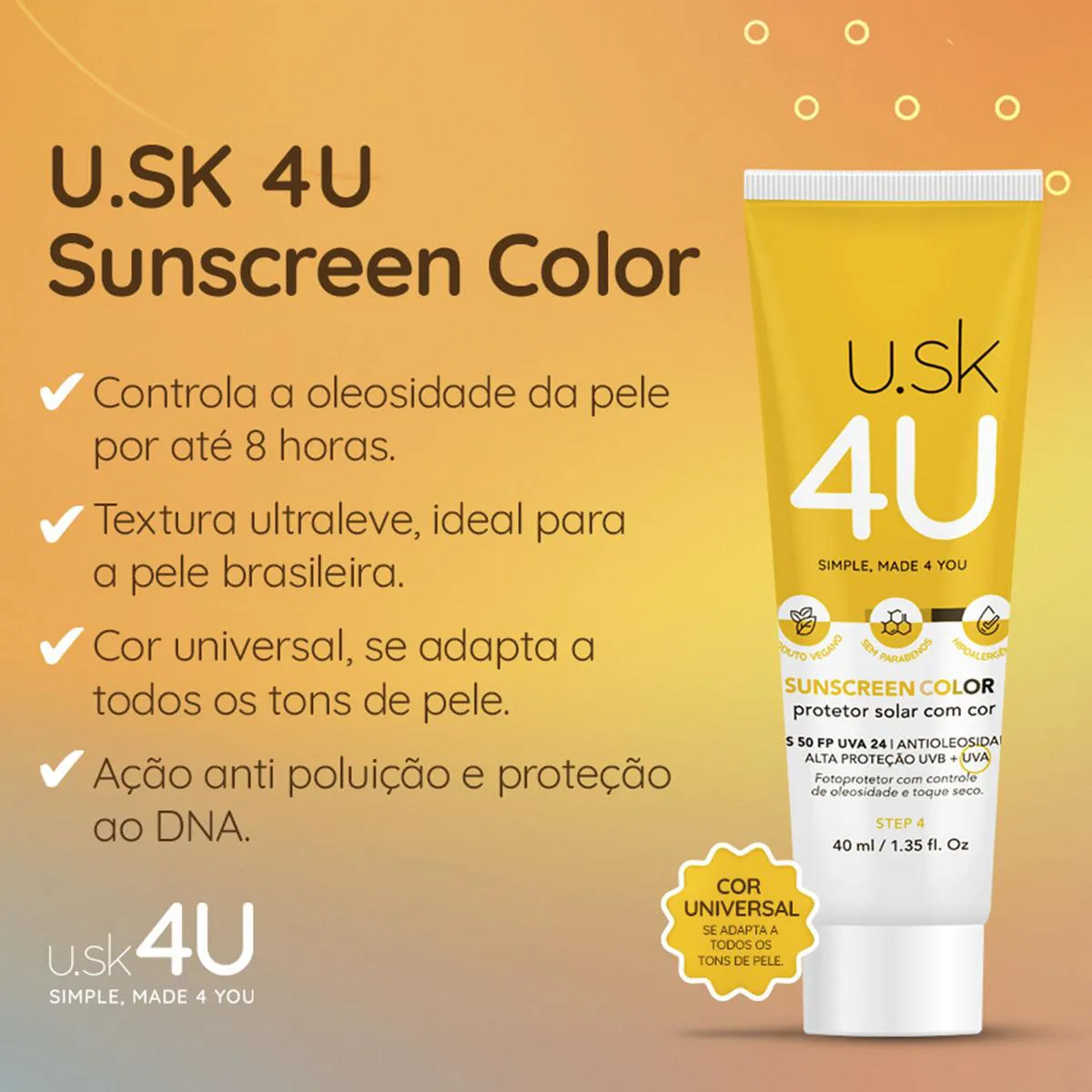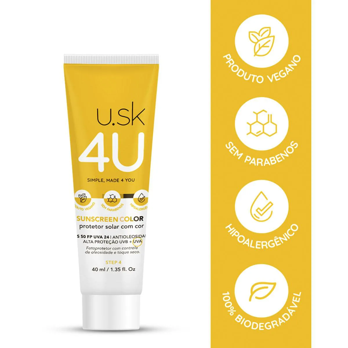 Protetor Solar U.SK 4U Sunscreen Color FPS 50 Cor Universal 40ml