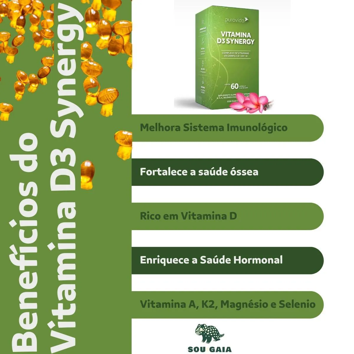 VITAMINA D3 SYNERGY PURAVIDA 2.000U.I.S K2 MK7, 60 CáPSULAS