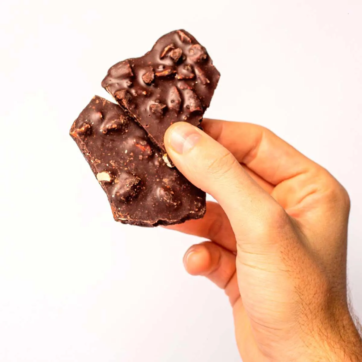 Nutznack, o snack de chocolate perfeito pro seu desejo. Com somente 5 ingredientes. Pedaços de chocolate 70% cacau com caramelo de açúcar de coco e amêndoas torradas numa mistura tão equilibrada que beira a perfeição.