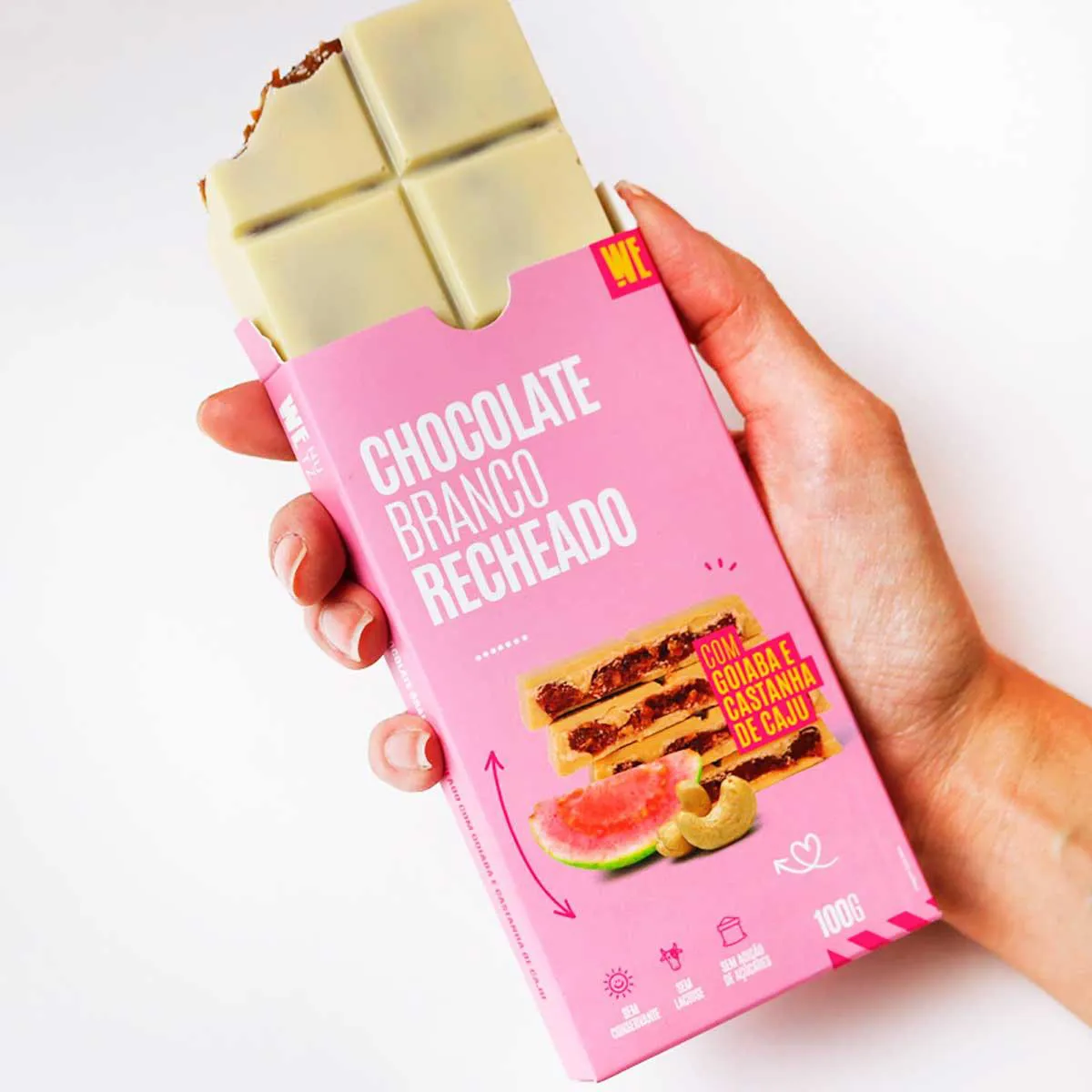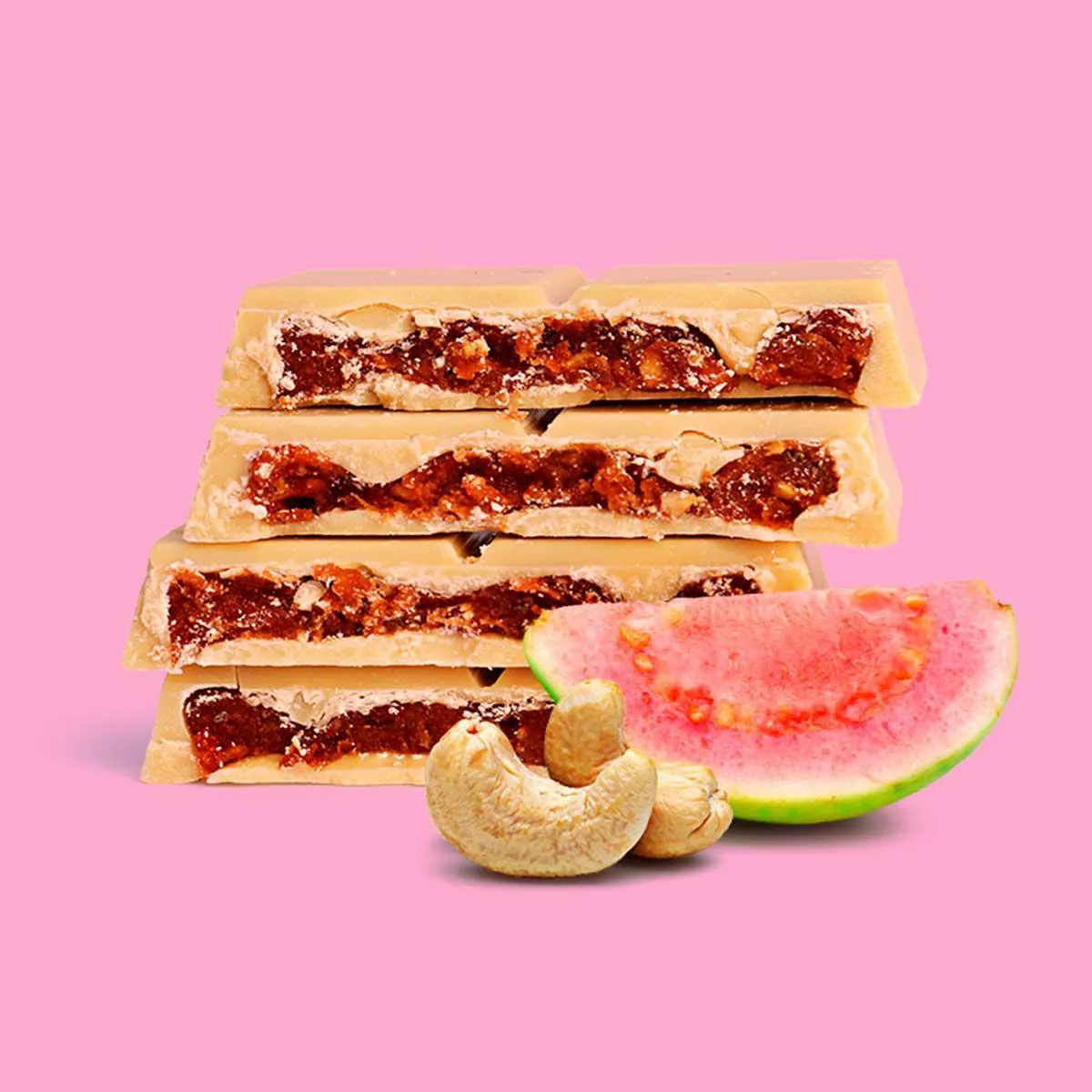 Nossa barra com recheio de Goiaba & Castanha traz o dulçor na medida certa com um toque salgado pra realçar o conjunto.